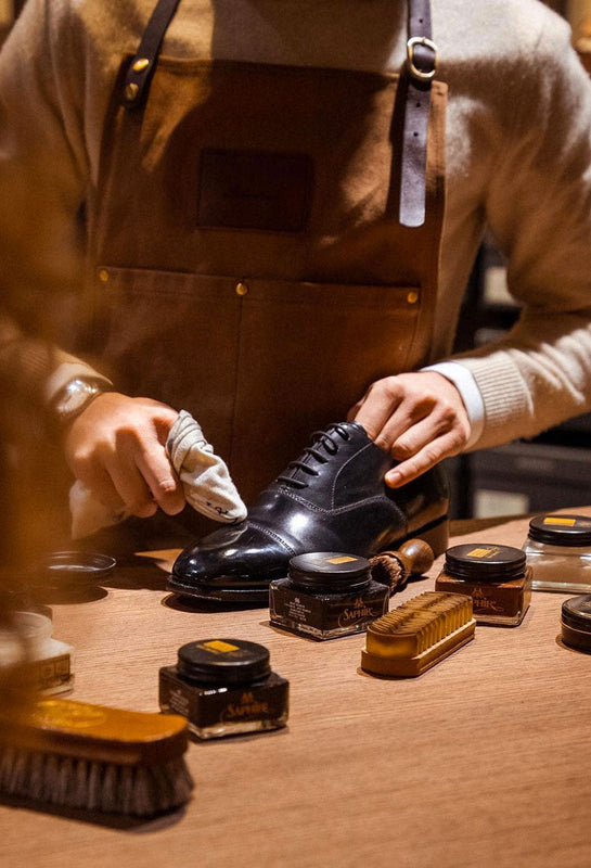 Shoe aficionados cannot go past Saphir's famous Mirror Gloss. A formula specifically developed to produce a ‘glaçage’ or ‘mirror shine’ to smooth leather shoes.