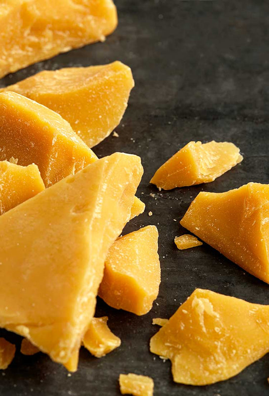 Honey is extracted from honeycombs leaving a yellow natural wax. Beeswax plays a major role in the composition of our shoe polish.