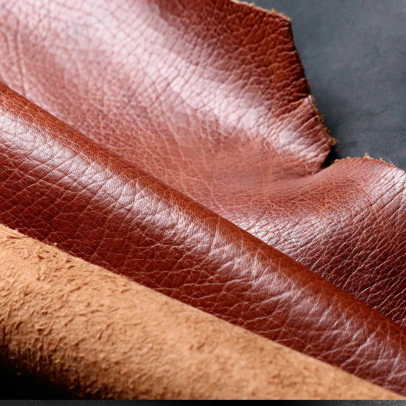 Smooth leather is the most common category. Its visible surface appears uniform — whether matte or glossy, soft or coarse. It includes various types such as calf, cowhide, horse, and cordovan. The term smooth refers to the appearance rather than the thickness or natural texture.