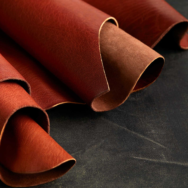 This leather is deeply nourished with fats — either plant-based or animal-derived — which penetrate its fibres to give it outstanding durability.