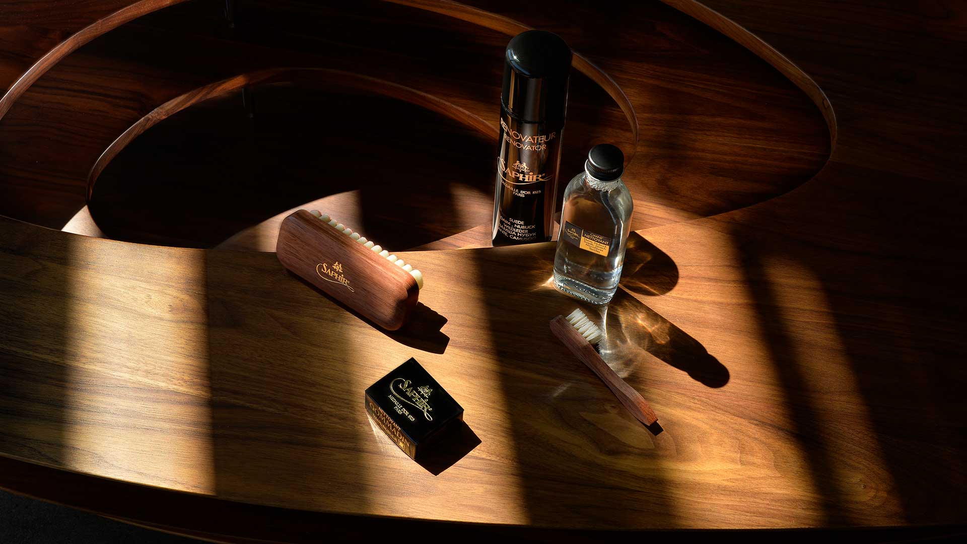 At Saphir, we are proud to preserve and enhance this precious material, magnified by shoemakers, leatherworkers, and glovemakers. Our range of premium care products supports each type of leather so that your items retain, year after year, the brilliance and beauty that first captivated you.