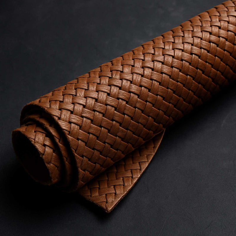 Hand-braiding strips of cowhide or calfskin combines aesthetics with durability.
