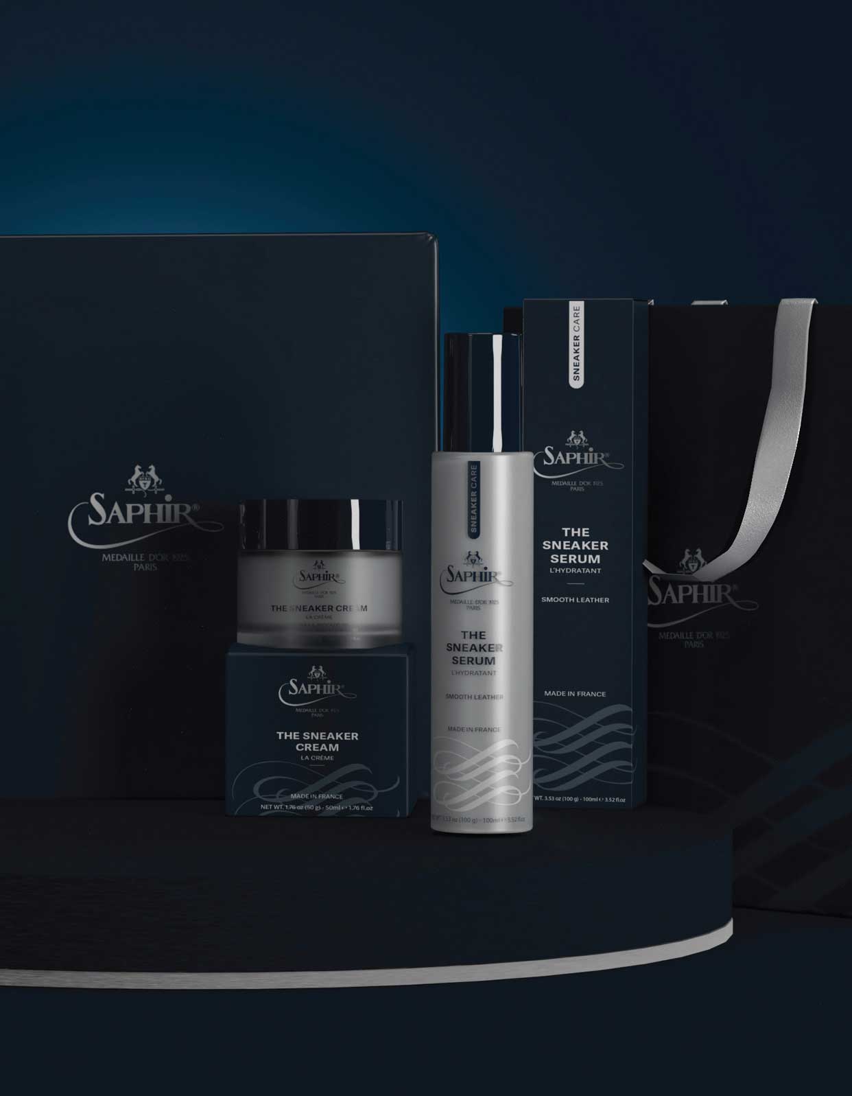 Saphir's sneaker care range features premium ingredients, meticulously crafted to preserve and enhance the elegance and longevity of luxury sneakers.